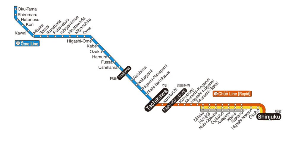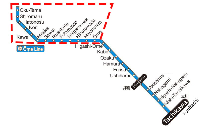 It’s a fairly straightforward journey from Tokyo, starting from a station on the Chuo Line. For example, from Shinjuku Station, take a train along the Chuo line towards Takao, then alight at Tachikawa Station. Transfer to the JR Ome Line.
