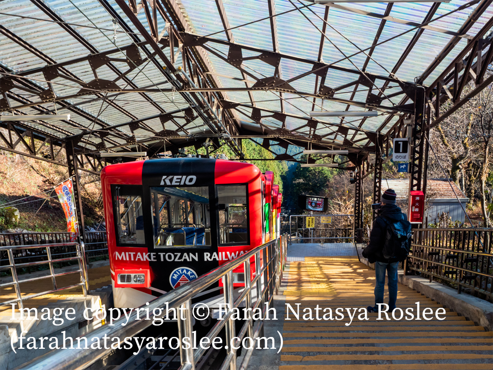 You can get to Mt. Mitake from Mitake Station via the Mitake Tozan Railway cable car (see timetable and fares). Take the Nishi Tokyo Bus (see timetable) from outside Mitake Station to the terminal to Takimoto Station (the terminal stop), then walk uphill for about 5-10 minutes to the start of the Mitake Tozan railway. The cable car will take you up the mountain. Do take note of the cable car and bus timetables to plan your journey back down the mountain.